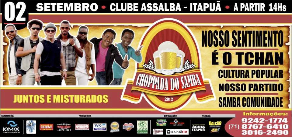 Em setembro acontecerá em Itapuã o evento mais esperado do momento! Trata-se da Chopada do Samba, que será realizada no Clube Assalba no dia 2 de setembro!